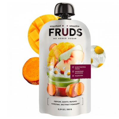 Состав: пюре яблочное, пюре персиковое, пюре из манго, пищевое волокно (инулин), клетчатка льняная, сок лимонный концентрированный, экстракт ромашки, куркума молотая.