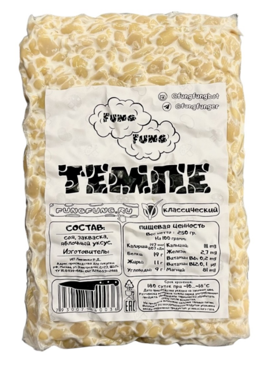 Темпе – это довольно новый продукт для белорусского рынка. Производят темпе из вареных и ферментированных соевых бобов, которые формируются в брикеты и обладают легким ореховым вкусом. Этот соевый продукт является одним из самых высоко питательных, так как богат магнием, калием, железом и фосфором.