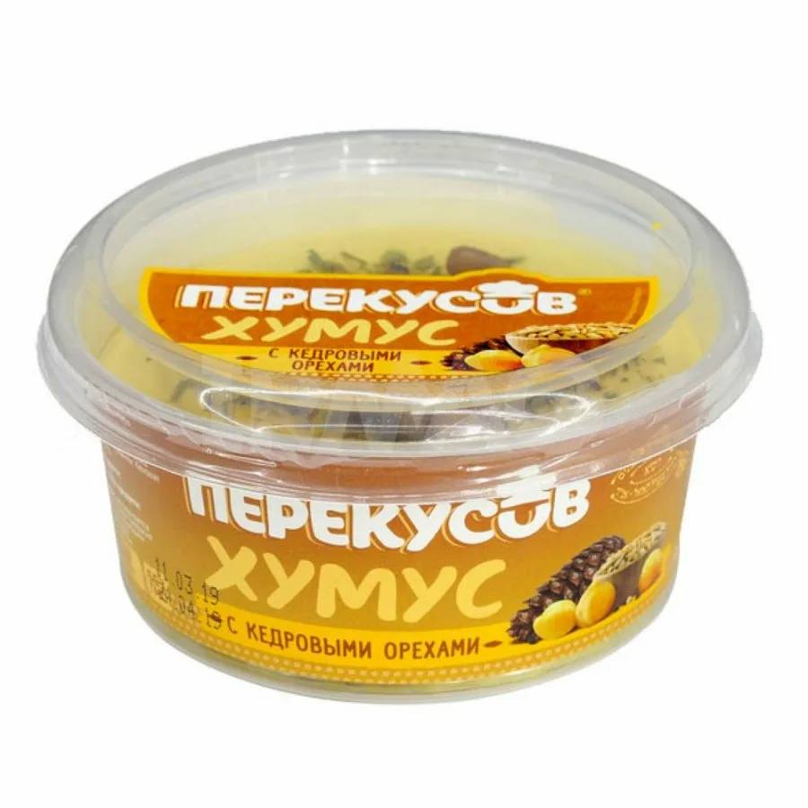 Состав: нут, тхина (кунжутная паста), масло растительное, кедровые орехи, соль, масло оливковое, чеснок, регулятор кислотности - лимонная кислота, зелень петрушки, специи, консервант: сорбиновая кислота (Е200), бензоат натрия (Е211). Без ГМО.